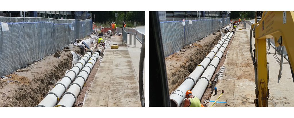 DESCRIPTION: Construction of new 900 diameter stormwater trunk line including connection into existing heritage Oviform. The works included excavation of 8 metre deep trenches, custom shoring, service diversions and construction of all manholes. The works was staged in accordance with requirements of both Transport for NSW and Sydney City Council.